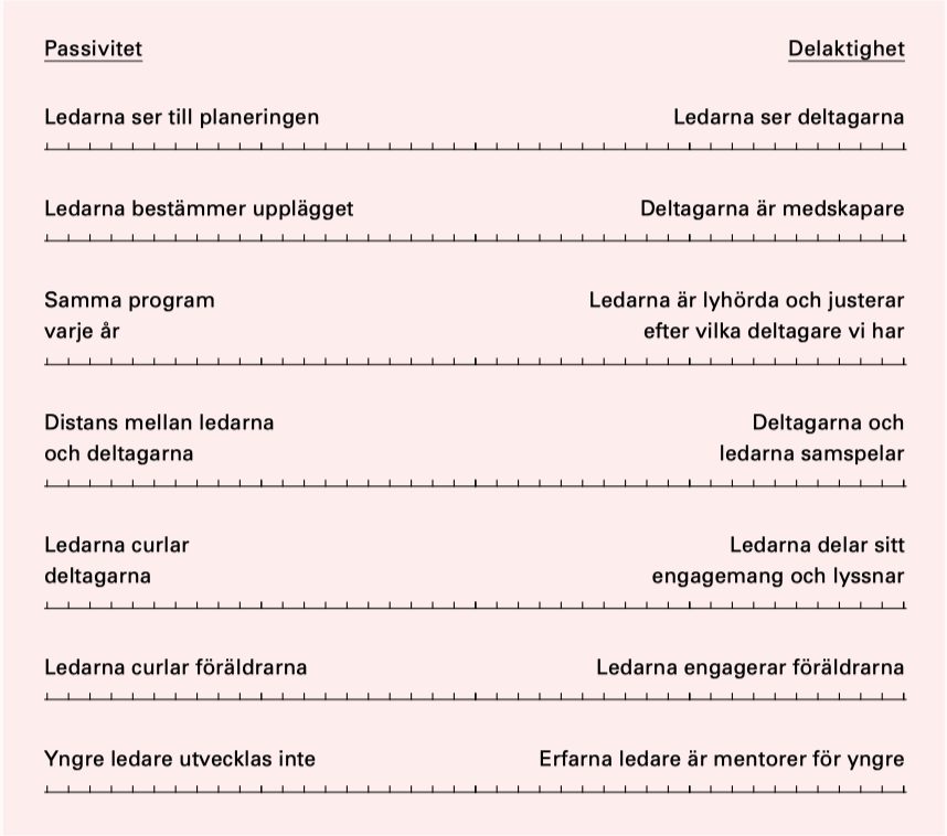 Utvärdera er verksamhet genom att diskutera var ni befinner er idag på denna linje mellan passivt och aktivt deltagande: