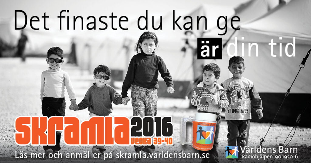 Den 1 och 8 oktober i höst kan ni som Equmeniaförening skramla för Världens barn. Samla in pengar på er ort och ge barn chansen till en bättre vardag!